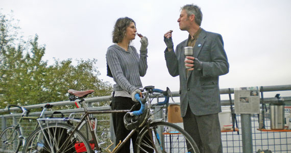 The last friday of every month for over 10 years now (and every Friday during June), the Shift community has been providing free pastries and coffee (and sometimes more!) to bike commuters. We gather every month on the Steel (east side Esplanade), Hawthorne (westbound off ramp), and Burnside (east end, westbound). Join us during your commute for companionship and a little nutrition and a lot of good times.