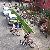 Fun ride in the sun, celebrate body freedom, bring paint for self expression & messages. Clothing optional, smiles recommended. This is the biggest day-time nekid ride. We'll ride past MCBF and through all five quadrants of Portland. Busy streets, quiet streets and paths. Ride ends in NW at the Fig Leif Ride. Policy of no photos by ride participants.